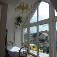 Unsere Ferienwohnung mit Elternschlafzimmer und Kinderzimmer - eine Wohnung für die ganze Familie! Vom Balkon aus sehen Sie bis zu den Höpfigheimer Weinbergen. Unsere Ferienwohnung - Urlaub mit der Familie Jetzt buchen... Preis pro Übernachtung mit Bio-Frühstück … … von 3 Personen 155 Euro (incl. gesetzl. MwSt.) Getrennte Zimmer mit insgesamt 80 qm Wohnfläche ) Elternzimmer mit Doppelbett (200 cm  200 cm) Farbfernseher oder LED-TV Bequeme Sessel und Schränke für Ihre Kleidung Wasserkocher mit Bio-Tees, Bio-Zucker oder Bio-Kaffee Kostenloser Parkplatz direkt am Hotel Kostenloses WLAN in allen Zimmern Das Codewort kann an der Rezeption erfragt werden Unser Haus verfügt über  1 Ferienwohnung Wohnzimmer mit gemütlicher Polstergarnitur für den Spiele- oder Fernsehabend mit der Familie Küchenzeile mit Backofen, Kühlschrank und Spüle Großzügiges und modernes Badezimmer mit Fön und allen gängigen Hygieneartikeln Und am Abend vielleicht ein besonderer Piwi-Wein? Unsere Piwi-Weine runden einen ereignisreichen Tag ab Kinderzimmer mit 3 getrennten Betten (100 cm  200 cm) Unsere Ferienwohnung ist bestens ausgestattet Nach oben Sie legen großen Wert auf Hygiene?      Sie praktisch Unser Hotel hat eine allergiker-gerechte Ausstattung. Bitte geben Sie bei Buchung an,wenn eine besondere Allergie wie z.B. eine Hausstaubmilbenallergie vorliegt. Sie leiden an einer Allergie?      Sie praktisch … von 4 Personen 165 Euro (incl. gesetzl. MwSt.) … von 5 Personen 175 Euro (incl. gesetzl. MwSt.)